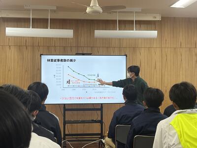 林業科学科の生徒は、4年制大学(農学部)、国家公務員(林野庁職員)、県庁(林業職)や林業・木材産業など、森林・林業に関する幅広い進路を希望する生徒がいるため、専門性を深める、素晴らしい機会になりました