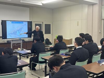 林業科学科1・2年生は、国宝「通潤橋」をはじめとした緑川流域に点在する伝統建造物「石橋」の歴史と文化、施工技術について石橋伝統技術保存会や尾上建設の方々から講義を受けました