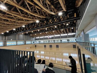 昼食を「道の駅大津」で食べて、1日かけての研修になりましたが、生徒達は普段は見られない現場の様子に興味津々で、積極的にメモや質問を行っていました