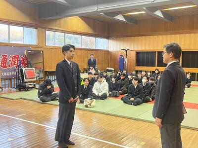 また、林業科学科の宮本さんは、「森林や林業、自然環境を学び自然との共生を科学し、地域に貢献できるような人材へと成長したい。学校農業クラブの三大目標である、社会性・指導性・科学性を身につけられるように努力したい」と抱負を述べました。