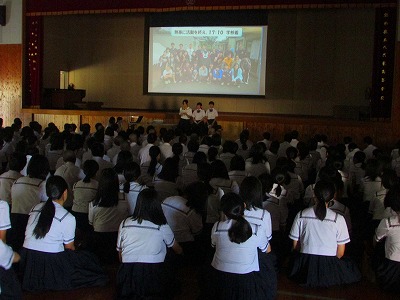 活動の内容や感じたことを全校生徒と共有することで、今後自分たちに何ができうるのか、