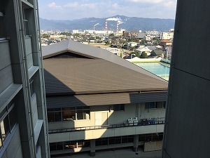 早速、校舎の5階まで、階段をかけのぼり、1年3組の教室から撮影をしました。