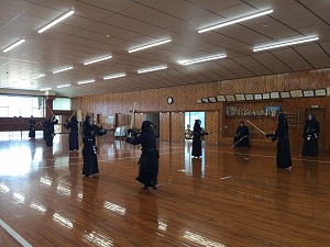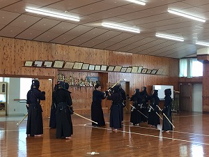 剣道部です。緊張感の漂う中、真剣な練習の様子が伝わってきます。