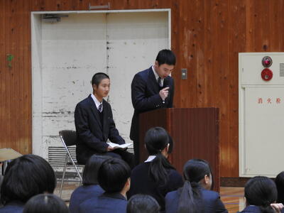 12月11日(水)6限目生徒会三役立会演説会が実施されました。立候補者の思いを真剣に話を聞き、投票を行いました。