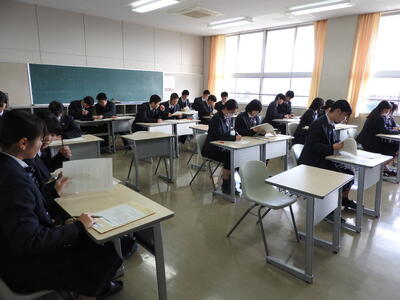 この講義に参加した商業科1年生は、真剣な表情で話を聞いていました。感想では、「商業を学ぶことの楽しさを改めて実感した。」・「簿記会計は、社会人として求められる重要なスキルの一つであることがわかった」など、日頃学んでいる授業の重要性を知るよいきっかけとなりました。