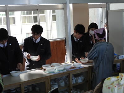 東高の恒例行事、「馳走会」が今年もやってきました。PTAの呼びかけで朝早くから保護者の方々が集まり、豚汁を作って昼食時に振る舞っていただきました。昨日の長距離走の疲れも吹っ飛ぶくらいの温かい豚汁とご飯に、生徒たちも大喜びの様子でした。