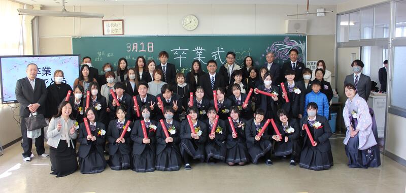 3月1日に第73回卒業証書授与式が挙行されました。77名の3年生の皆さん、ご卒業おめでとうございます。皆さんの門出を無事にお祝いすることができ、良かったと思っています。卒業生のこれからの未来が素敵なものになりますように、職員一同願っています。