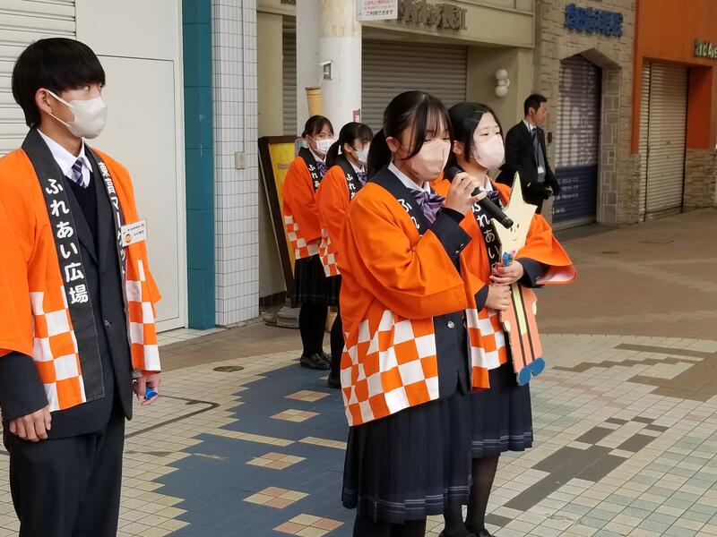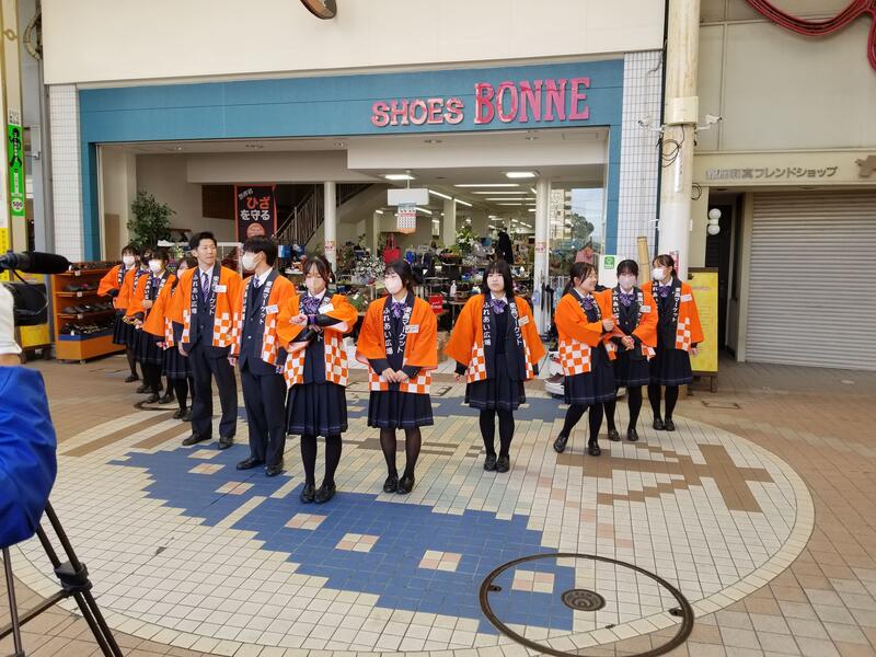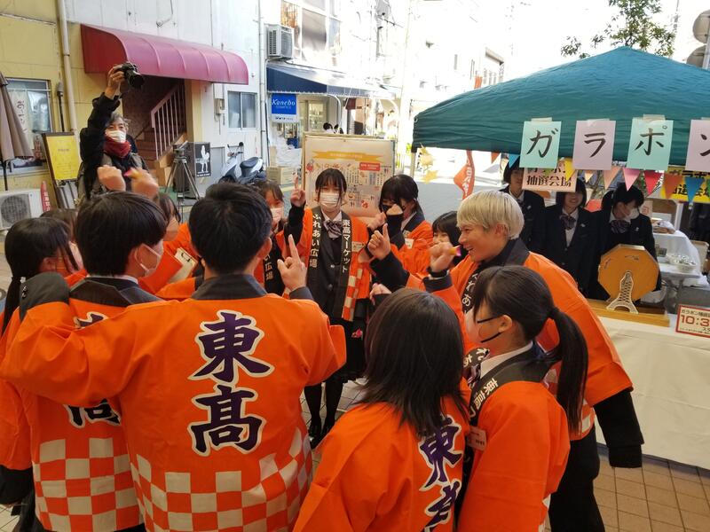 本日東高マーケットが開店しました。3年生の中野さんの挨拶のあとマーケットリーダーとインフルエンサーの三津家貴也さんも出席してオープニングセレモニーを行い、開店しました。