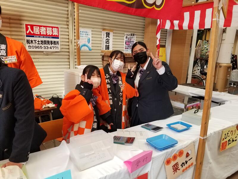 東高マーケットは12月2日(土)・3日(日)に八代市本町アーケードで開催します。営業時間は、午前10時から午後3時までです。お車でお越しの際は、総合病院駐車場を御利用ください。生徒達のがんばりを是非、ご覧ください。