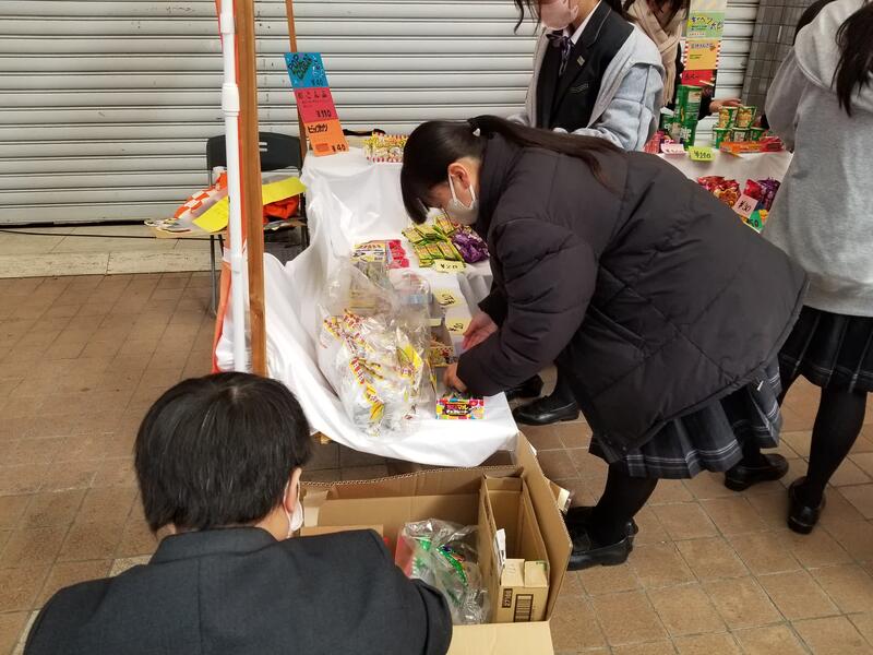 生徒たちは、商品陳列、値札づけ、在庫の確認など開店まで仕事がたくさんあります。