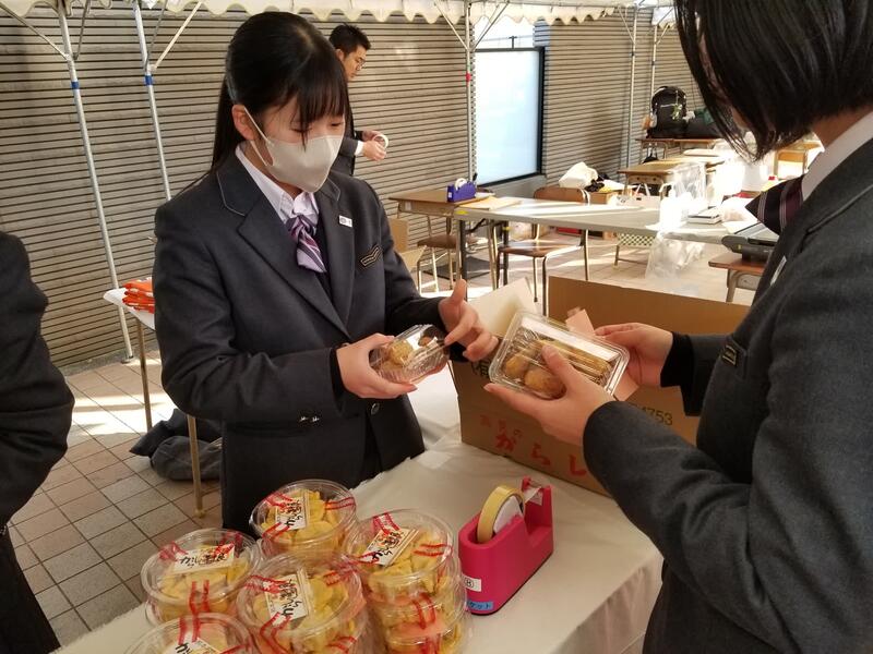 東高マーケットで、生徒たちは販売実習を通して様々なことを学びます。