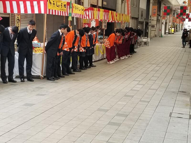 実行委員長の音頭のもと全生徒が「いらっしゃいませ」を唱和