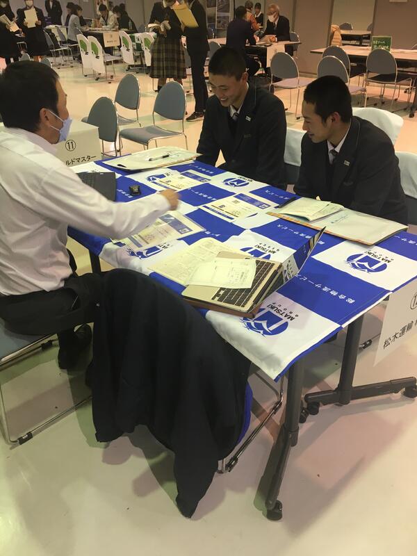 12月19日(火)に2年生就職希望者約30名で「高校生と企業との意見交換会」に参加しました。企業の個別ブースを訪問したり、全体セミナーを聴講したり有意義な時間を過ごせました。