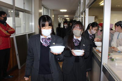 PTAから豚汁とご飯のおもてなしがありました。朝早くから準備ありがとうございました。生徒みんな大喜びでした。