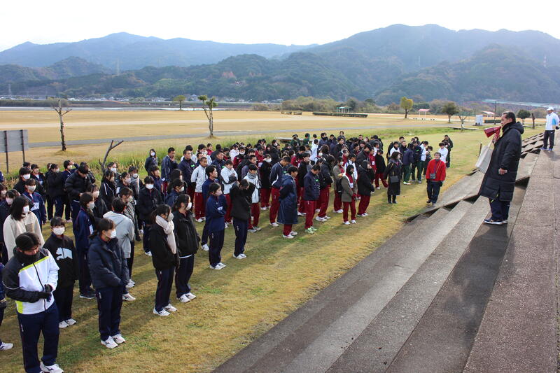 12月20日(水)に八代河川敷において長距離走大会が行われました。北風が吹きつけるなか、それぞれのペースで全員完走することができました。