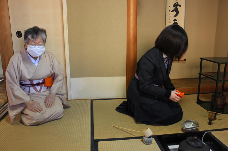 2月27日(火)の放課後茶道部の卒業茶会が行われました。茶道部は、週1回外部指導者の藤原順子先生からご指導いただき、稽古を積んできました。茶会では、保護者や学年等の先生方をお招きしてお点前を披露しました。