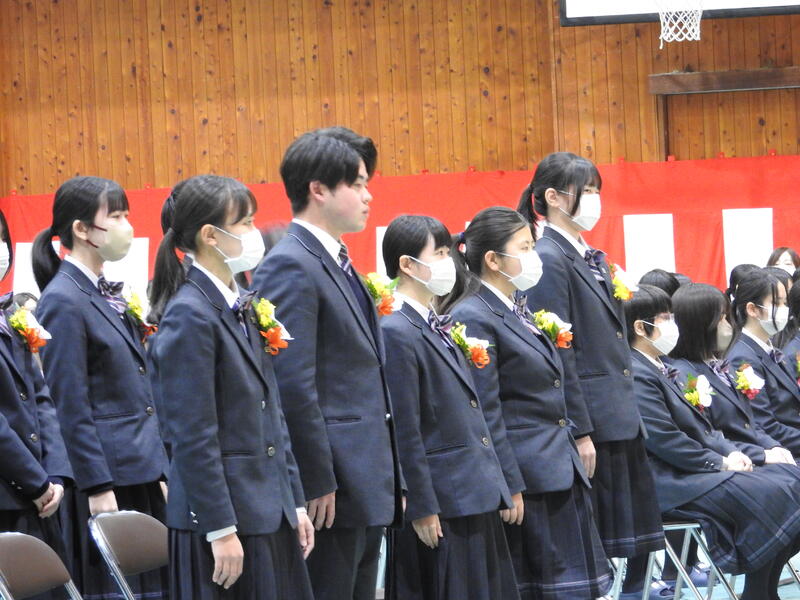 3月1日に第73回卒業証書授与式が挙行されました。77名の3年生の皆さん、ご卒業おめでとうございます。皆さんの門出を無事にお祝いすることができ、良かったと思っています。卒業生のこれからの未来が素敵なものになりますように、職員一同願っています。