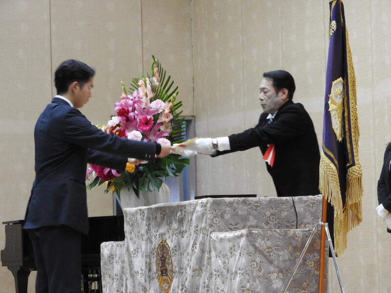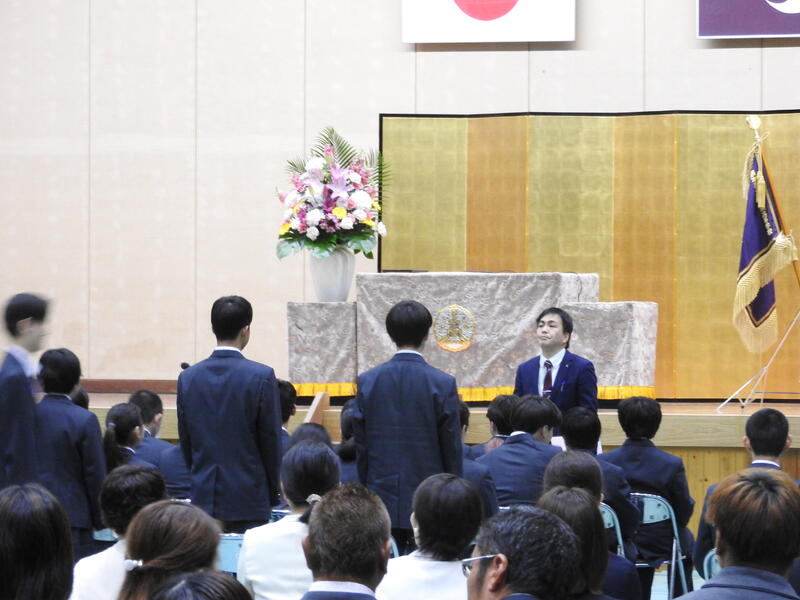 令和6年4月4日 八代グランドホテルにて八代商工会議所主催『新入社員合同入社式』が行われ、学校を代表して出席して参りました。八代地域の優良企業21社の新入社員総勢48名が参加し、その中にこの3月に我が八代東高校を卒業した6名の先輩たちの顔ぶれがありました。現3年生も夢を実現して、来年の入社式に晴れやかな顔で臨めるように生徒たちを支援していきたいと思いました。