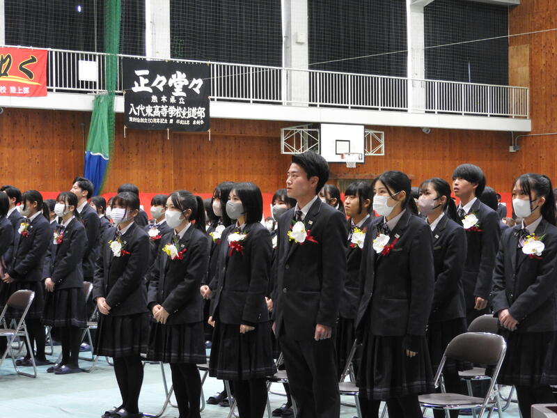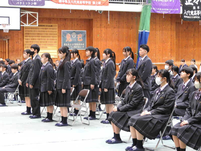 表彰式の後、同窓会入会式が行われました。同窓会入会式では、同窓会会長から温かい祝辞をいただきました。八代東高校の同窓生は、2万3千人を超え、地元八代はもとより全国、世界で活躍されています。同窓会のHPでは、同窓会に関する情報を随時発信しています。