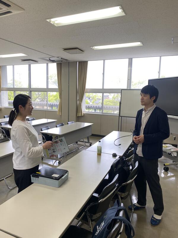 説明会後、商業の先生が専門学校との連携授業について相談していました。