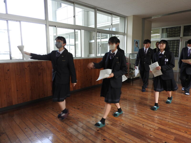 シェイクアウト訓練を実施しました。地震が発生した時の「まず低く、頭を守り、動かない」について全校生徒で訓練しました。熊本地震の教訓を踏まえ、真剣に取り組んでくれました。