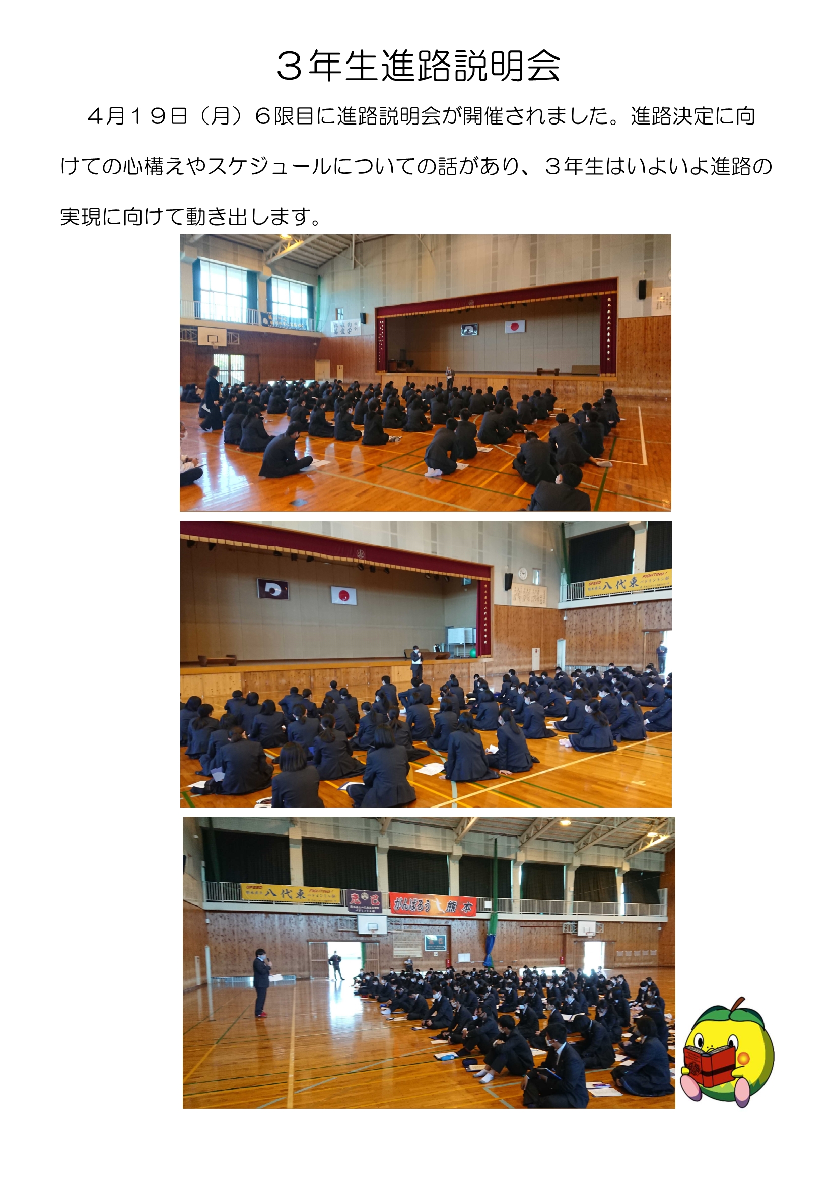 生徒の皆さんは、少人数に分かれて、校内の各教室で。