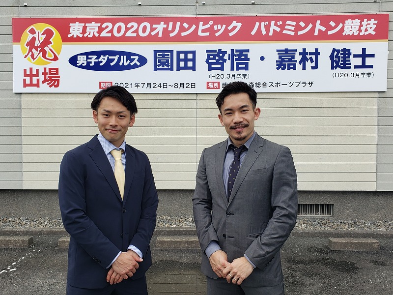 来る7月23日に開幕の「東京オリンピック2020」に出場する、本校出身の園田啓悟選手と嘉村建士選手の壮行会が行われました。高校時代からバドミントン部でペアを組んでいた先輩方のオリンピック出場をお祝いすると共に、世界で活躍するアスリートのプレイを間近で見ることができ、生徒たちも大興奮でした。