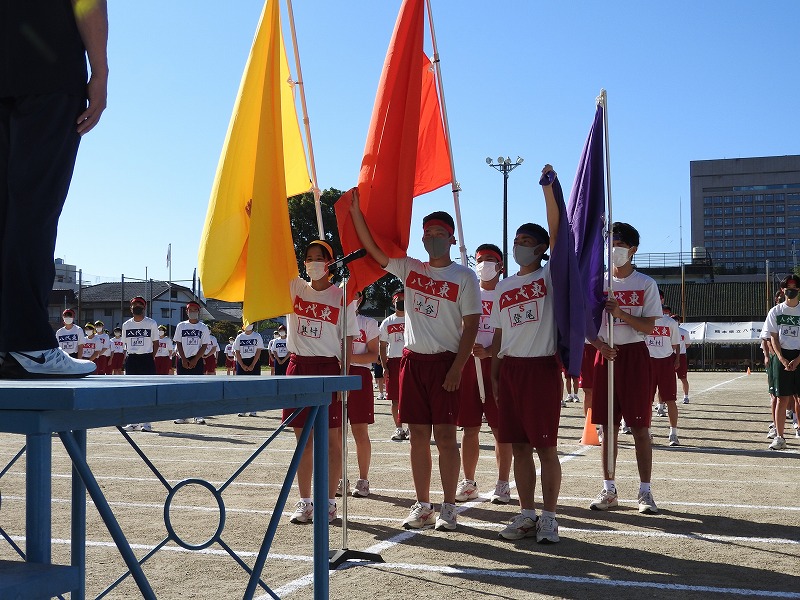 9月30日(木)に令和3年度体育大会を実施しました。2年ぶりとなった体育大会。感染予防を考慮し無観客の体育大会でしたが、生徒と先生が一丸となって協力し、白熱した体育大会となりました。また、保護者向けにライブ配信も行いました。
