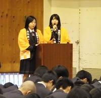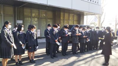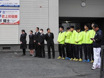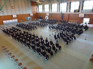 全校生徒の校歌斉唱で応援の気持ちを表しました