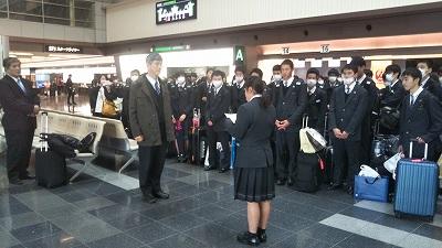 【出発式での研修者代表あいさつ】 阿蘇くまもと空港にて
