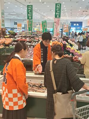 10月12日(土)にイオン八代ショッピングセンターにて販売実習を行いました。参加生徒は、商業科と情報ネットワーク科の1、2年生です。