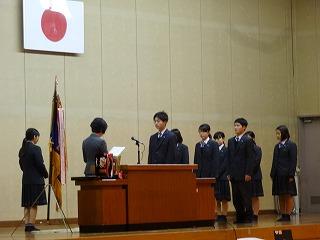 旧生徒会役員の退任、新生徒会役員の役員の認定が行われました。
