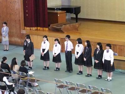 表彰式では、バドミントン部、感想文入選の表彰が行われました。