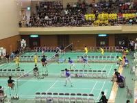八代市総合体育館には南北にコートが各5面作られていて、男女が一斉に試合をします