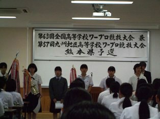6月12日(日)熊本県立熊本商業高校で第63回全国高等学校ワープロ競技大会兼第57回九州地区高等学校ワープロ競技大会熊本県予選大会に本校ワープロ部が出場してきました。ワープロ速度の部で団体3位、個人競技の部で3年赤星美聖(日奈久中卒)が5位に入賞しました。