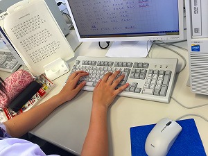 ホームポジションに指を置いて、丁寧に入力しています。