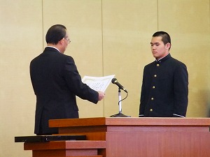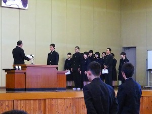 終業式の前には表彰式があり、部活動等で活躍した生徒たちが表彰されました。