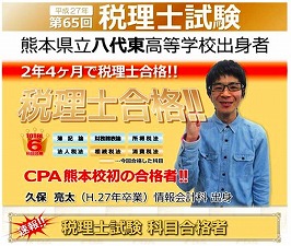 税理士試験合格(本校卒業生・卒業後2年4ヶ月・九州管内最年少合格かも