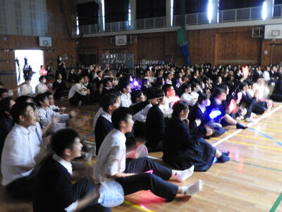 本校卒業生が駆け付けくれました。高校生活の過ごし方について話をしてくださいました。