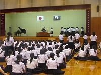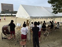 吹奏楽部は、入場行進のマーチ、国歌、若い力、校歌の練習をしていました。