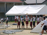 次はテントの設営です。運ぶ人、組み立てる人・・・流れ作業です。