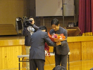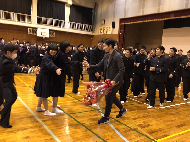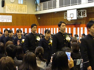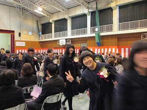 たくさんの卒業生がお別れにやってきて、体育館の中はいつもと違う雰囲気に。