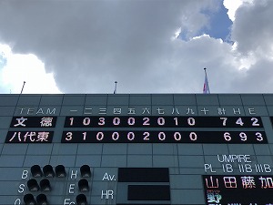 緊迫した投手戦の中、0対1で勝利することができました。