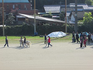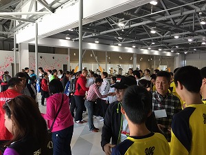 卓球同好会が参加しました。 画面中央奥が八代東です。