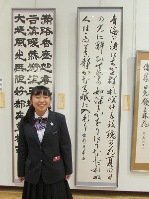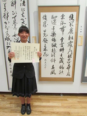 昨年12月、熊本県高等学校書道展にて、優秀賞に輝いた