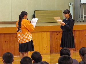 ・生徒代表 激励のことば(生徒会長 浦田 渚沙さん)