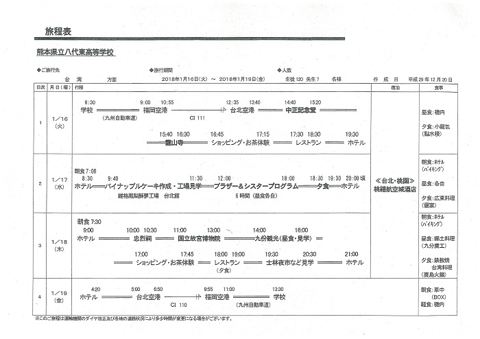 2学年修学旅行(台湾)1/16(火)~19(金)