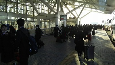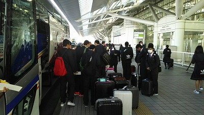 修学旅行初日の集合は早いです。