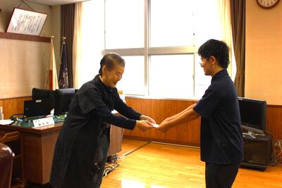 八代市青少年友好派遣団に本校1年の平野さんが参加することになり、同窓会から支援金を受け取りました。しっかりと八代市の代表として頑張ってきてください。