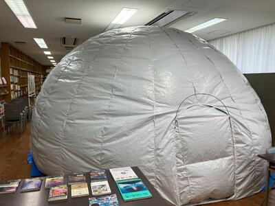 12月17日(火)~19日(木)の昼休みに、図書館にて移動式プラネタリウムによる「冬の星空観察会」を行いました。図書委員による導入の後、稲葉先生から星や宇宙について解説していただきました。真っ暗ななかに星々が煌めく様子を見るなど素敵な時間を過ごすことができました。